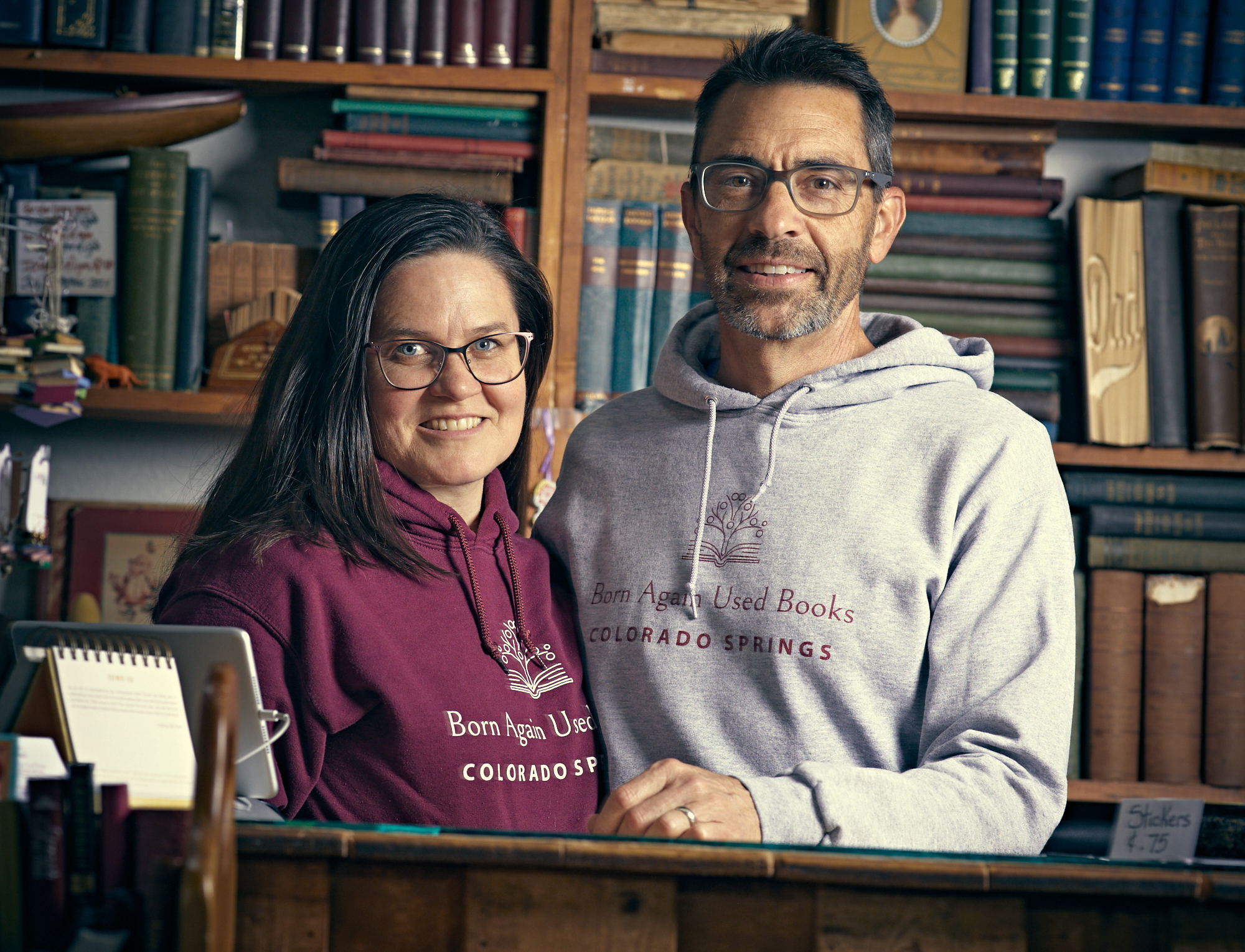 Sara and Eric Smith, owners of Born Again Used Books, in Colorado Springs, Colorado.